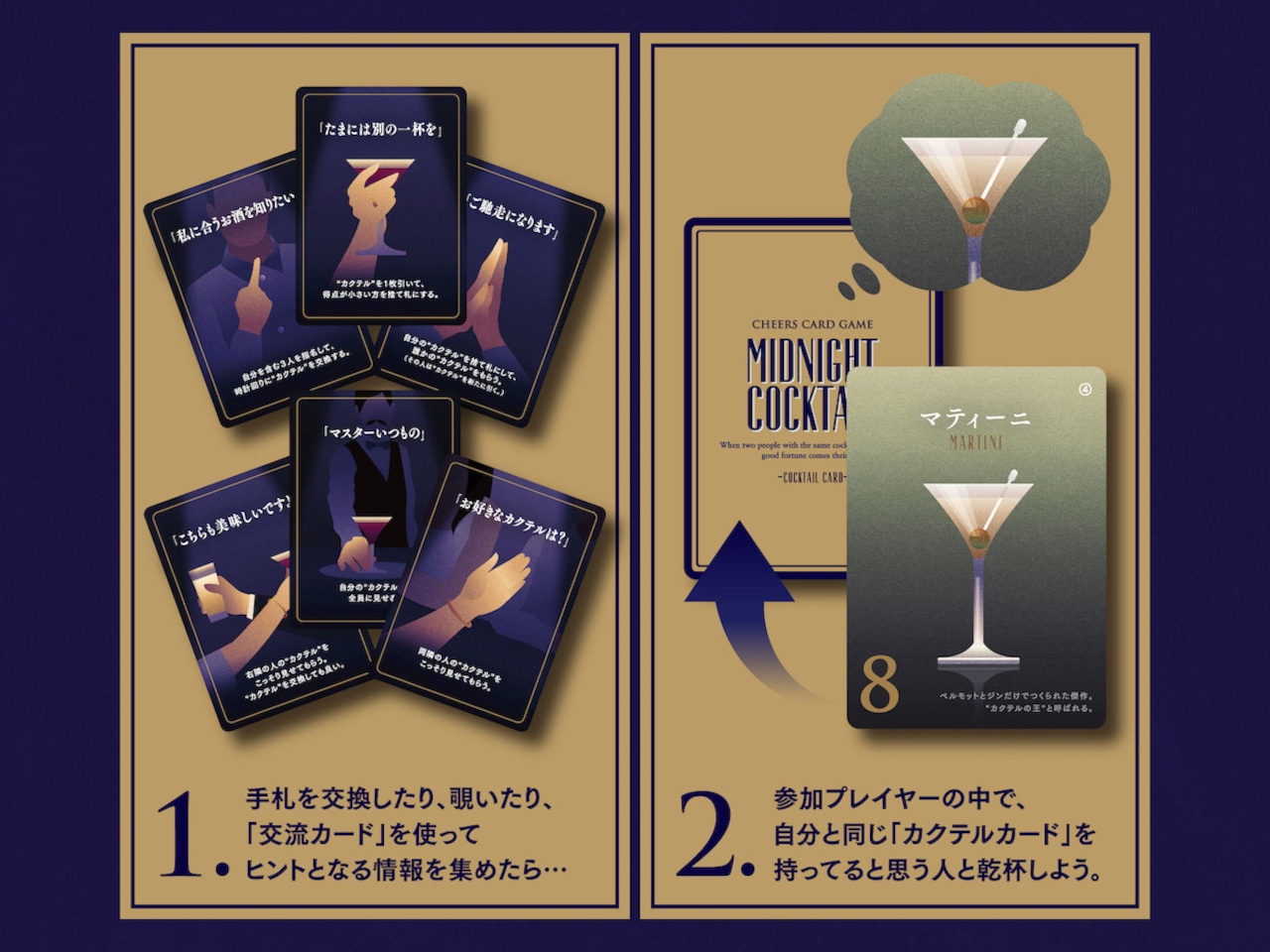さあ、バーで交流をしながらカクテルを推理し、自分と同じカクテルを持つ“運命の相手”と乾杯できるでしょうか?